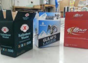 Nous habillons des caisses 6, 12 ou 24 bières avec nos marques maison.